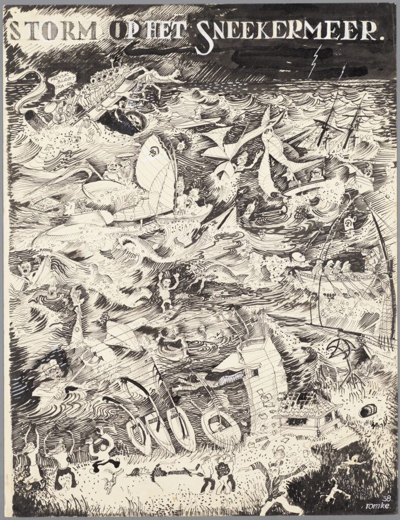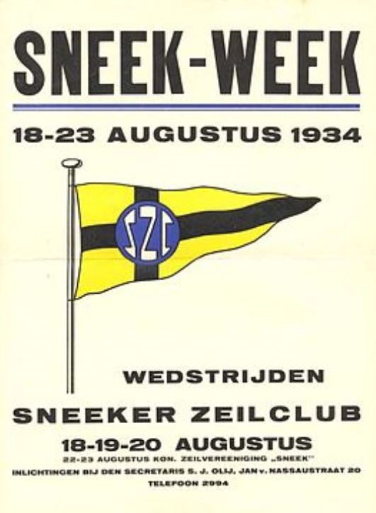 Ontwerptekening voor een raambiljet voor de Sneekweek van 1938 (Bron Fries Scheepvaart Museum)