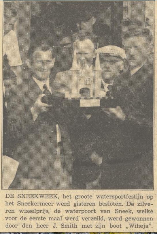 Zilveren waterpoort gewonnen door Dhr J. Smith met zijn boot ”Wiheja” 18-08-1939
