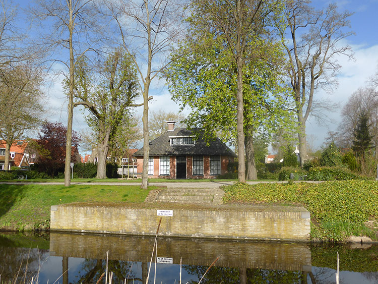 Op het foorterrein was plek foor wat meer sierlijkheid, met bochtige padsjes, bomen en de behearderswoaning.