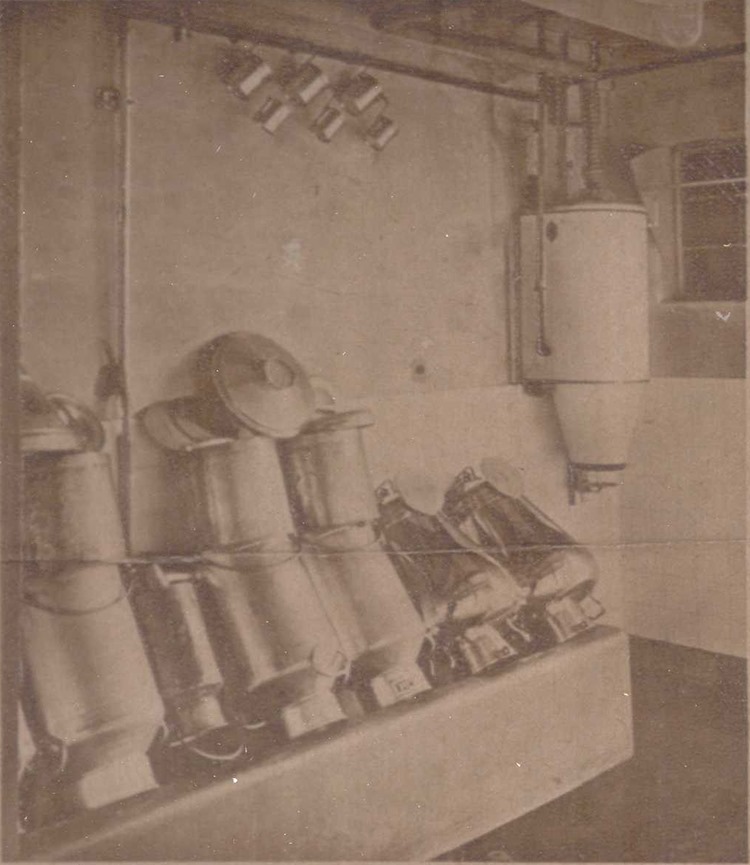 Het melklokaal, met in de hoek het “warmwaterapparaat”, ofte wel de geiser. Heel modern.
