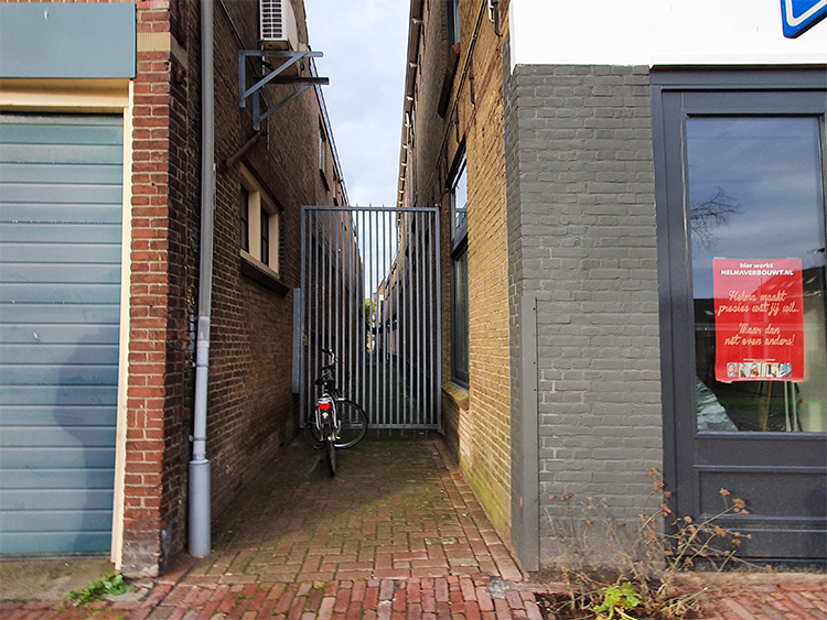 En tja, de fiets deed sien intrede, en het duurde niet lang of su nou en dan werd der ok deur de Knibbelsteeg fietst. En dat mocht niet fan de gemeente. Die plaatste an het begin fan de steeg een bord “verboden te fietsen”. Maar fan wie was de steeg nou eigenlijk? En wie had dan het recht om te bepalen dat je dêr niet fietse mochten?